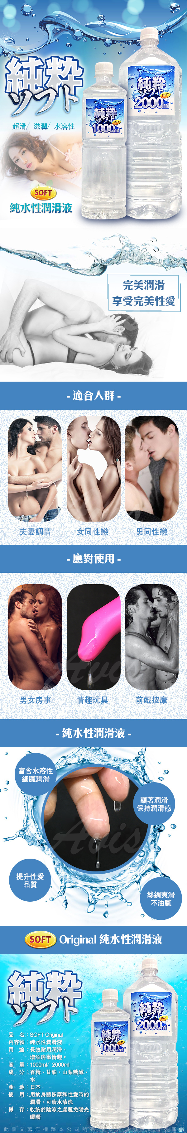.商品名稱:SOFT 純粹 純水性潤滑液 2000ml
