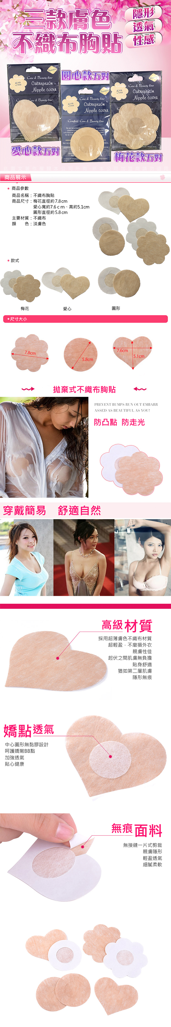 .主商品:不織布梅花隱形胸貼