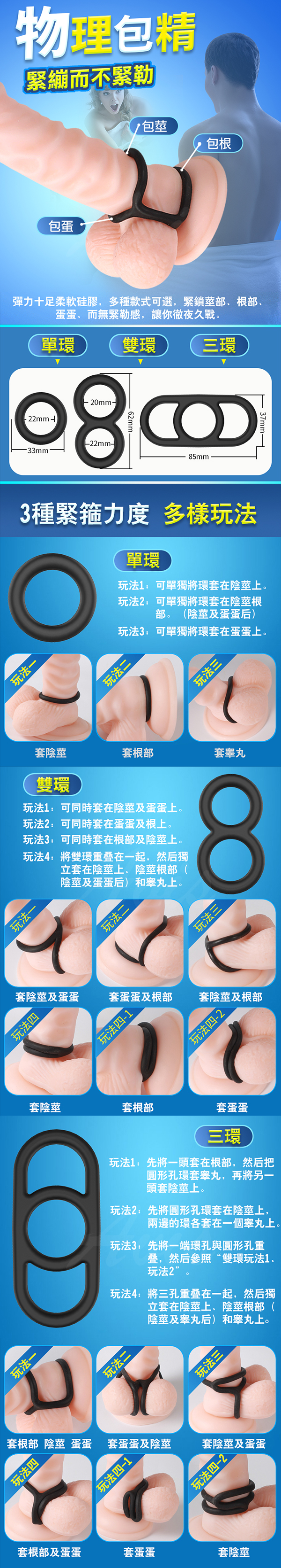 .主商品:取悅 魔法彈力矽膠鎖精環-3種緊箍環