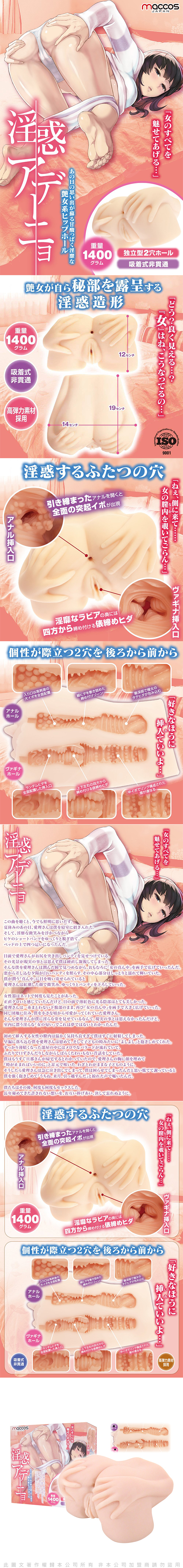 .主商品:日本maccos 工口慾姐 後入式立體造型 雙陰臀倒模 雙穴通道 自慰器