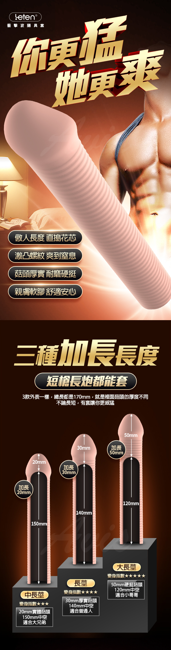 .主商品:LETEN 衝擊波 加長陽具套 加長款