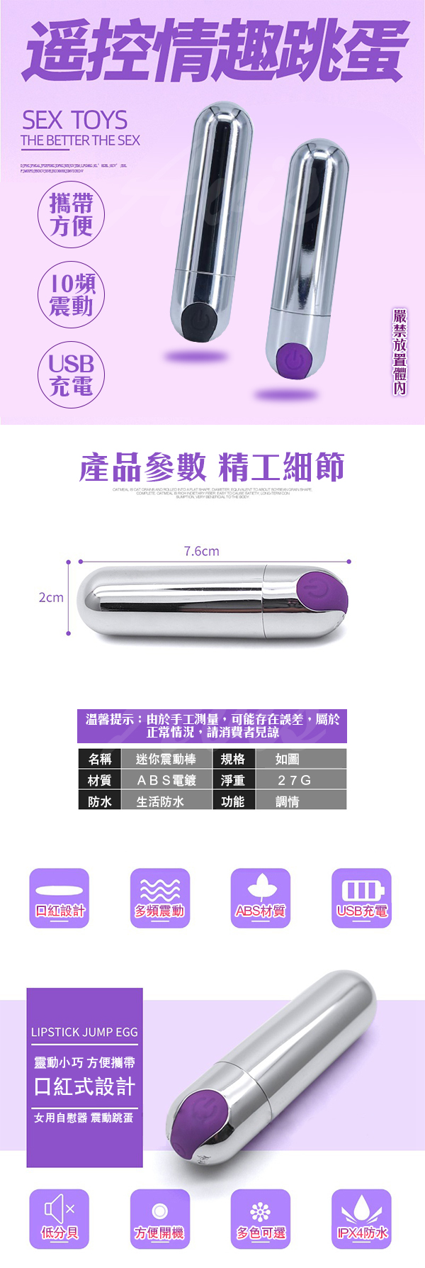 攜帶方便,10頻震動,USB充電