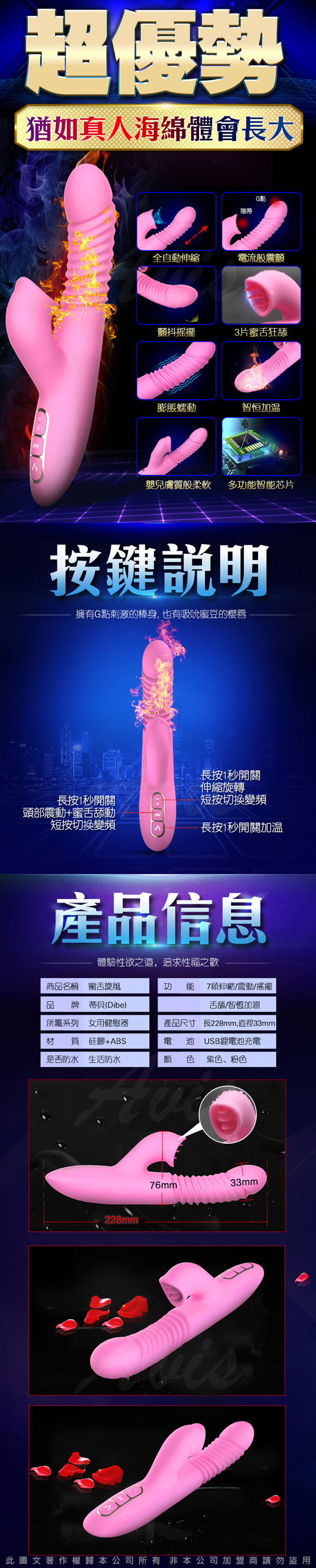 .主商品:Dibe-蜜舌旋風 自動加溫伸縮舌舔震動按摩棒