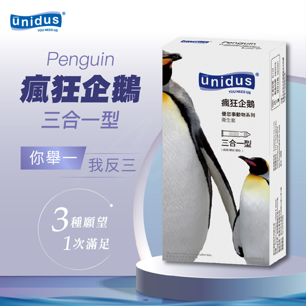 unidus優您事 動物系列保險套-瘋狂企鵝-三合一型 12入