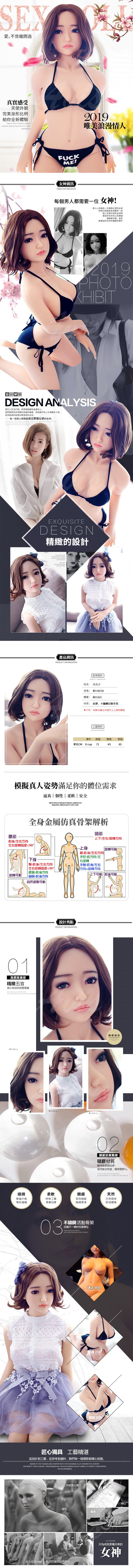 使用部位:陰交、肛交、口交三用,內置合金骨骼可固定姿勢,關節可動,可隨意變更姿勢