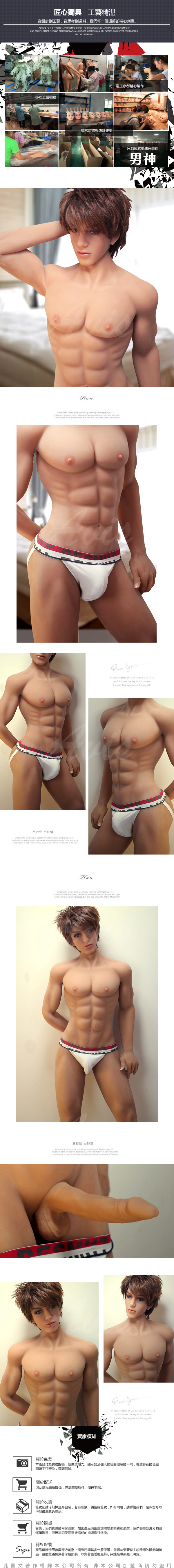 【材料】外皮(皮膚)為高級無毒超軟TPE,內有金屬骨架,四肢的活動範圍與真人類似。