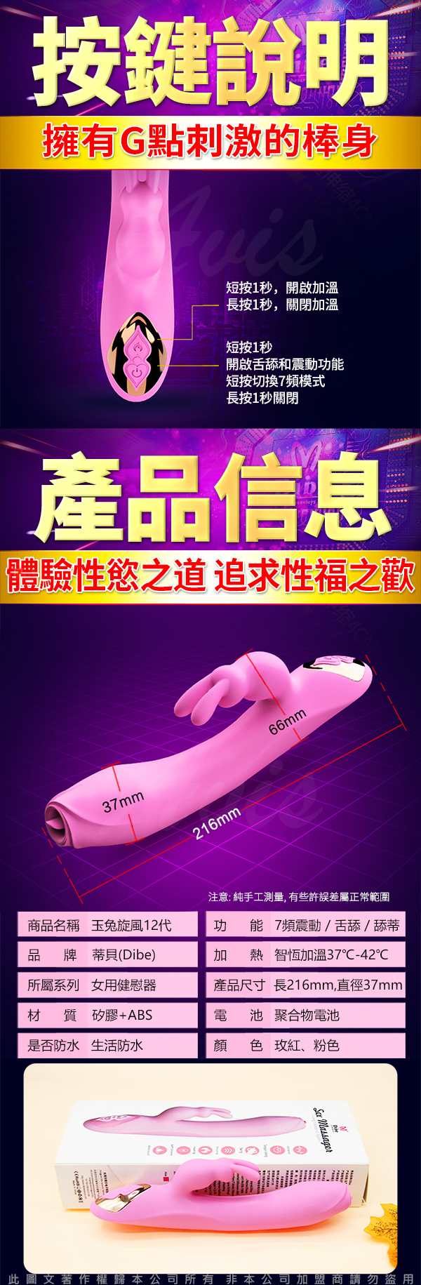 .商品功能:DIBE-玉兔旋風12代 7頻震動+外陰+加溫+舌舔 極品按摩棒