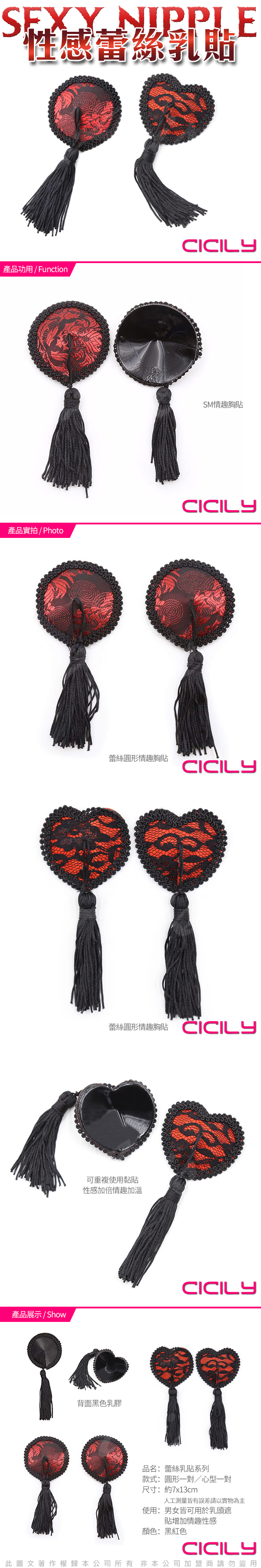 .主商品:CICILY  黑邊流蘇 紅色圓型 胸貼 乳貼