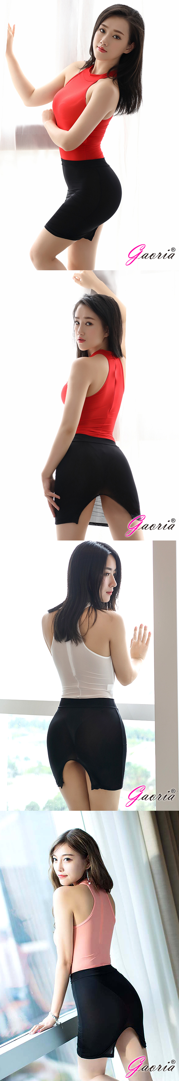 .商品內容:Gaoria 性感絲滑 透明後開叉緊身裙 半身裙 包裙 黑