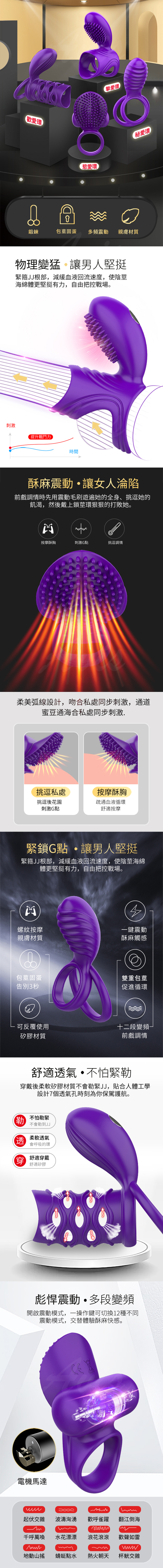 .商品名稱:秘愛 12段變頻雙重束精 矽膠震動鎖精環