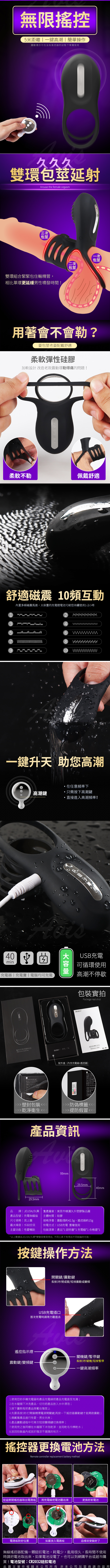 .商品名稱:久興-雙震10段變頻柔軟矽膠鎖精環-黑色 遙控款