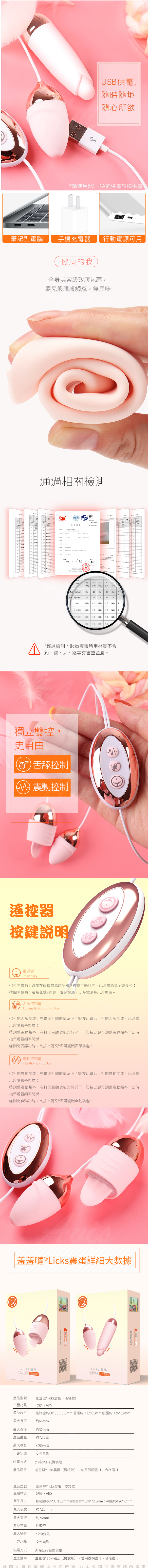 品名:香港久興-羞羞躂Licks 10段變頻 USB供電矽膠雙震蛋-雙震款