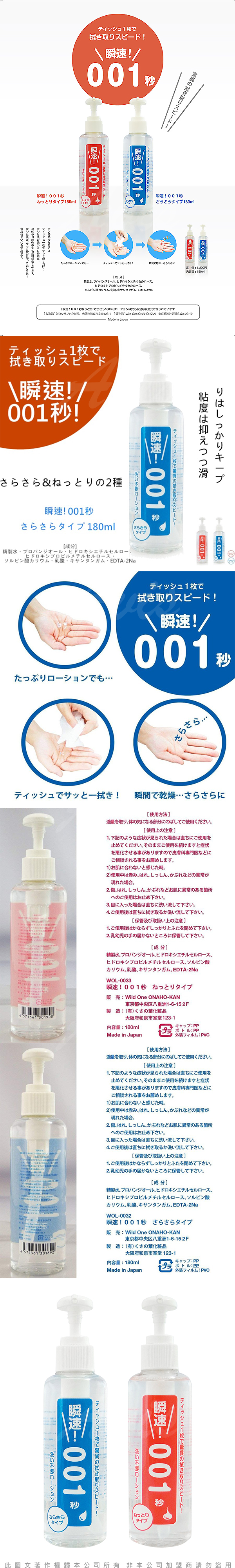 .主商品:日本Wild One 瞬速 001秒 免清洗型潤滑液 180ml 持久潤滑(紅色)