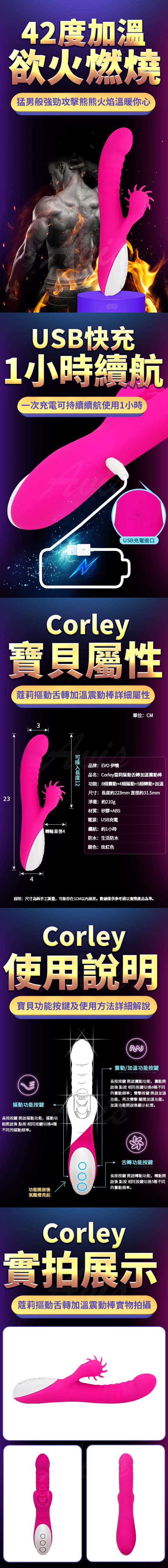 .主商品:EVO-Corley蔻莉 摳動舌轉加溫震動按摩棒