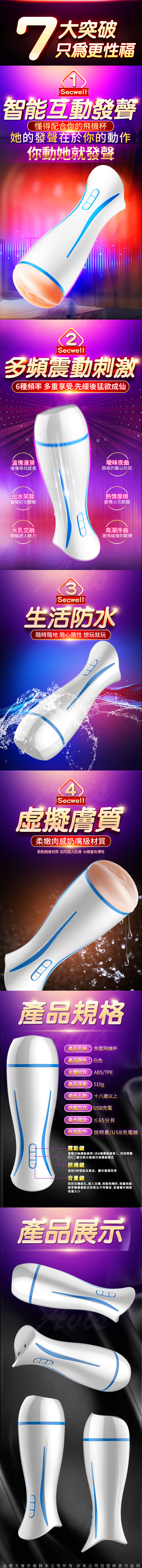 .主商品:魚雷 6段變頻 互動發聲震動自慰杯