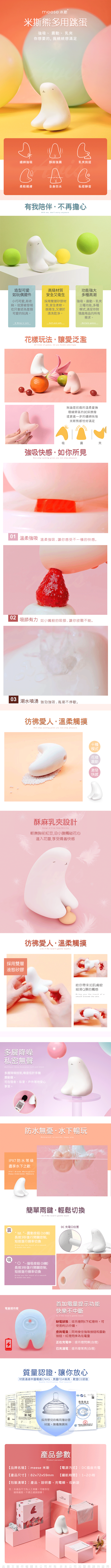 .商品名稱:MEESE米斯-米斯熊 吸吮+乳夾 多功能跳蛋按摩器