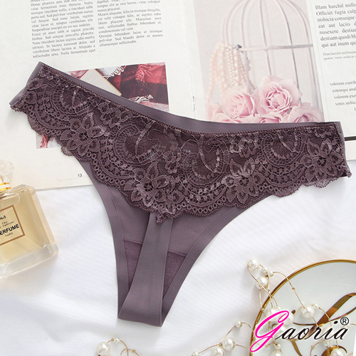 【Gaoria】寵愛甜心 無痕蕾絲花瓣冰絲 丁字褲 咖啡