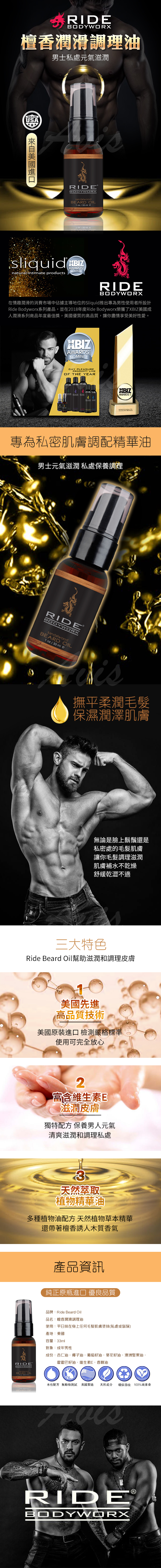 .商品名稱:美國Sliquid Ride BodyWorx Beard Oil 檀香潤滑 調理油 33ml