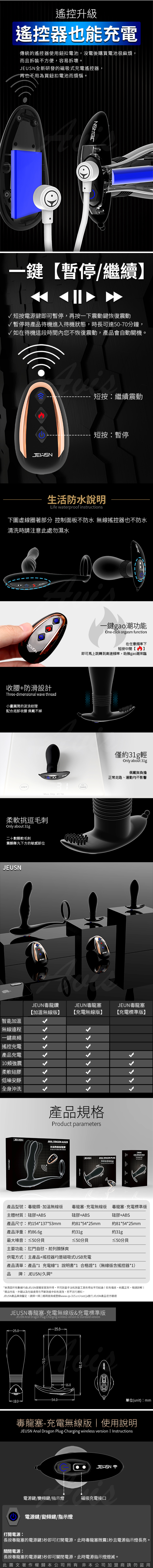 .商品名稱:久興-毒龍塞10頻強震後庭塞-遙控款