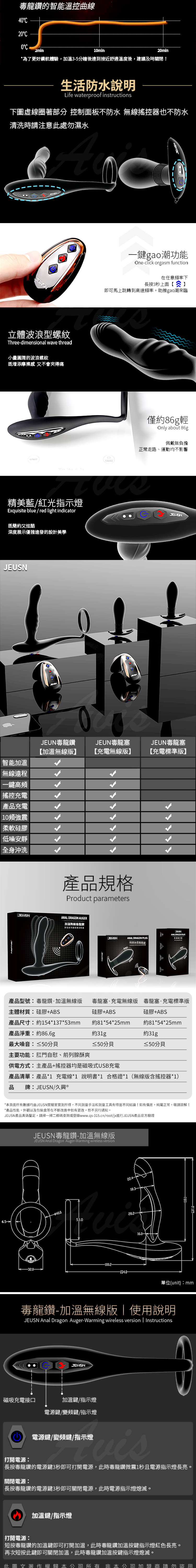 .商品名稱:久興-毒龍鑽10頻加溫前列腺+鎖精環 遙控款