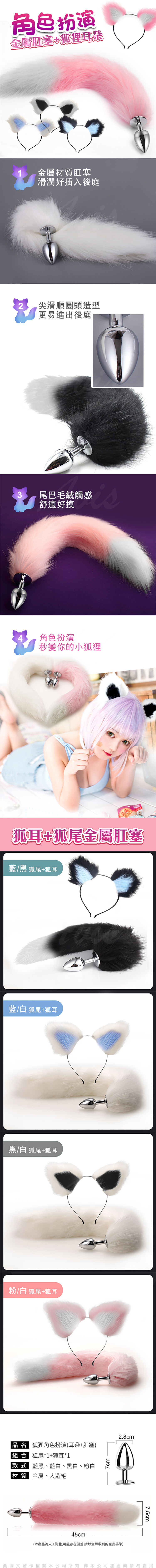 .商品內容:妖豔小狐狸角色扮演 毛絨耳朵+不鏽鋼肛塞尾巴 狐狸尾