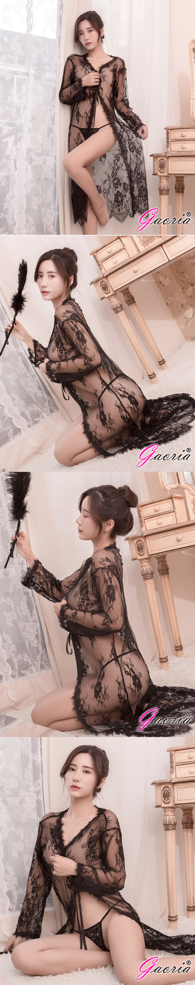 【Gaoria】長款睫毛系罩衫情趣睡衣 黑