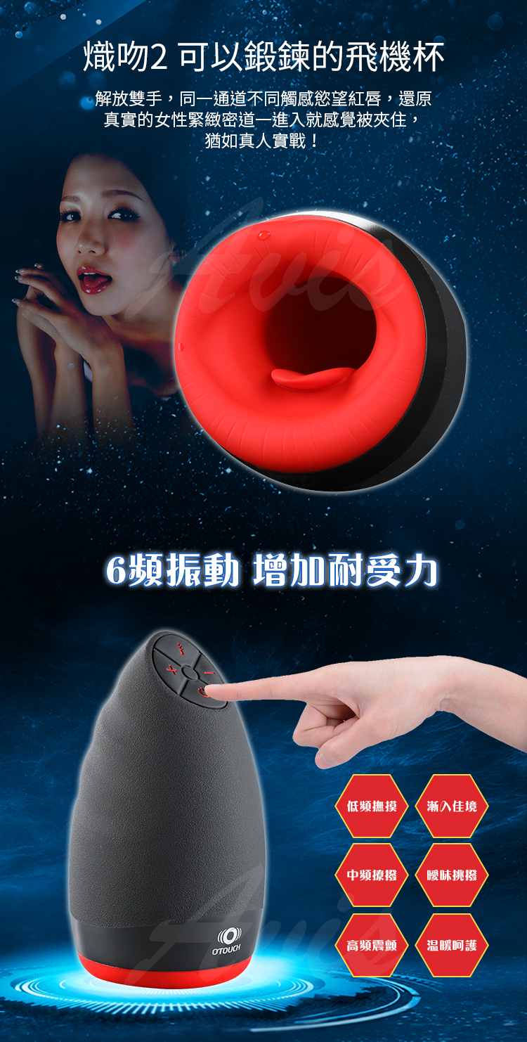 .主商品:OTOUCH CHIVEN2 熾吻2 6頻震動 3檔強度 2檔加熱電動飛機杯