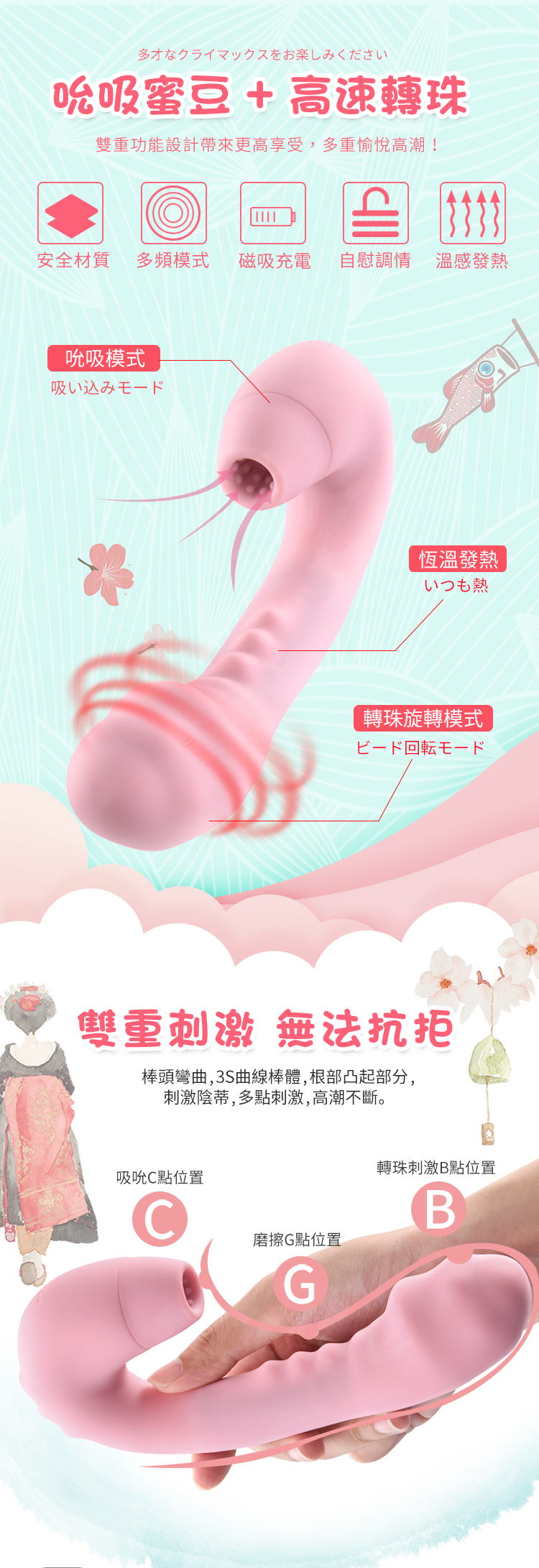 .主商品:壁咚 吸吮+轉珠 智能加溫 G點按摩棒