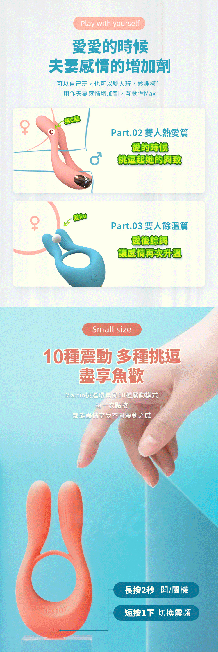 .商品名稱:KISTOY Martin 挑逗鎖精環男女共用情趣震動環-藍