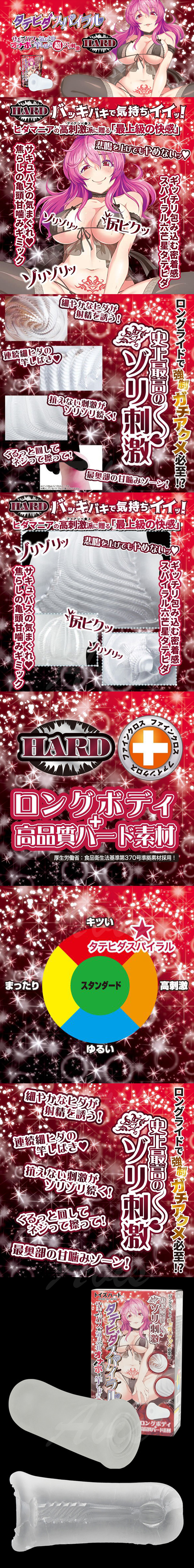 Toys Heart - 淫魔之終極螺旋蜜穴 (タテヒダスパイラル サキュバスの気まぐれオナホで竿しばき超ゾリ刺激),以高品質的硬身素材打造!插入感覺非常強烈,全因內部的特殊螺旋紋構造,在每條肉紋上更添加了強大量的小肉紋,配合緊窄的通道設計,在你推進的瞬間龜頭便能感受到來自各方的磨擦,如同遇上真的淫魔一樣,給你最上級的刺激快感!