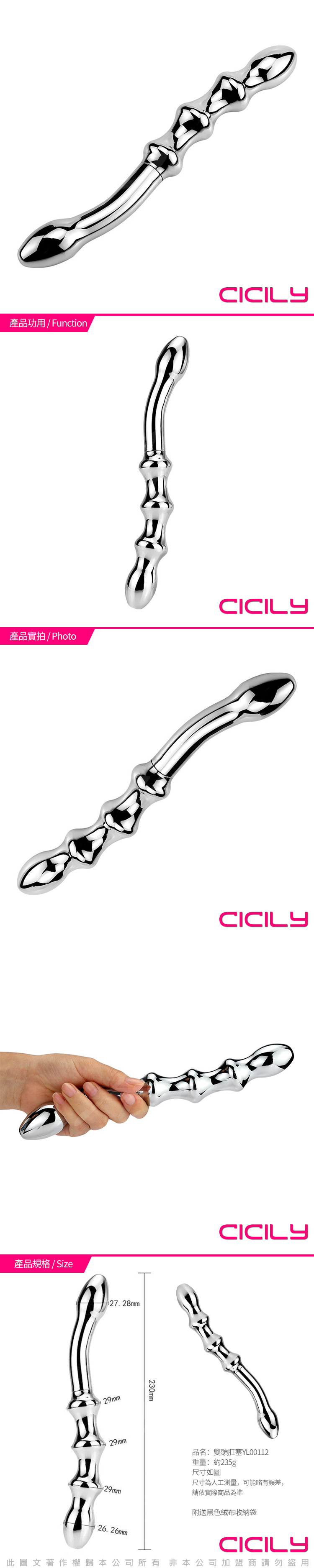 品名:CICILY-雙頭精靈 不銹鋼前列腺G點+後庭連拉珠按摩棒