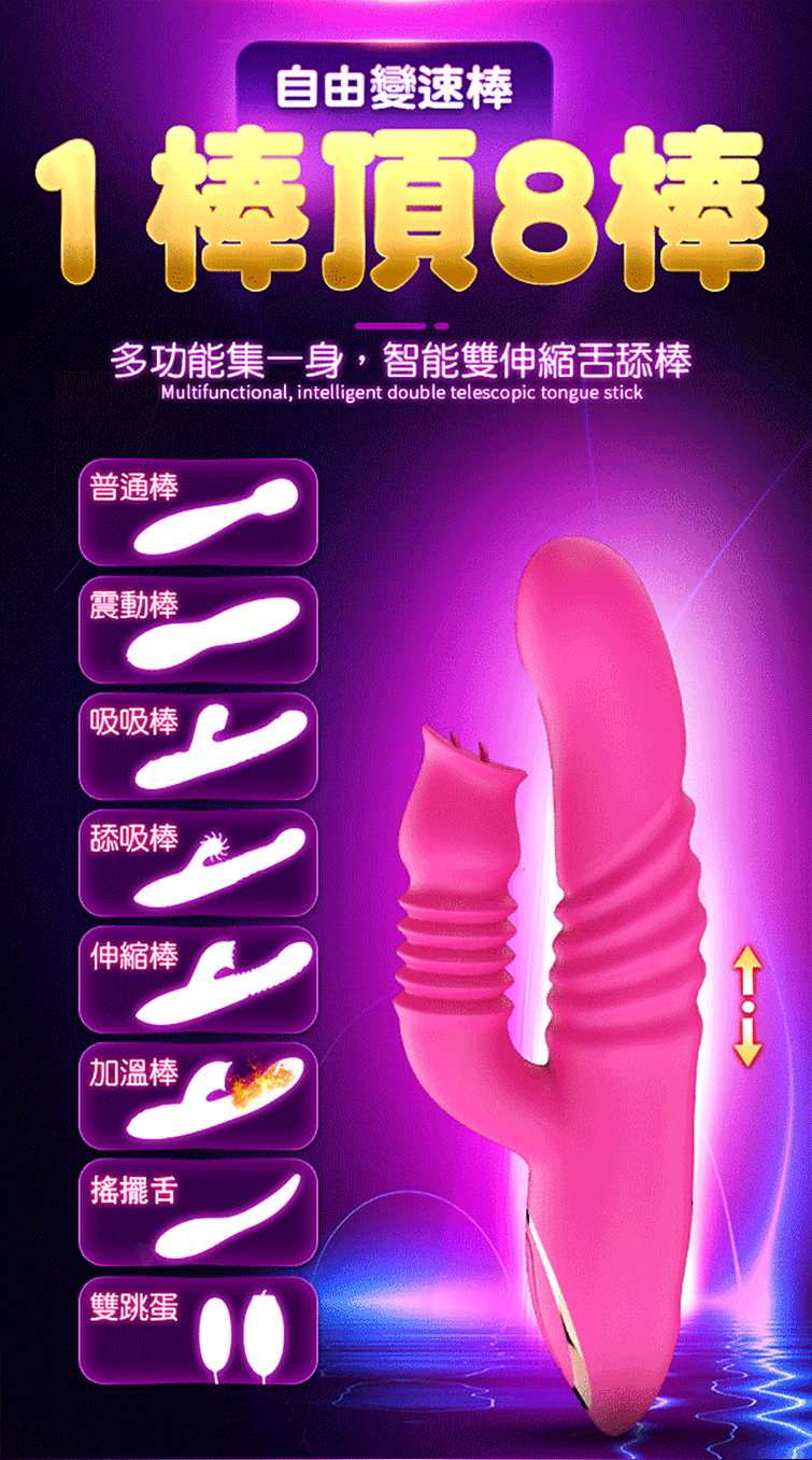 商品名稱:Dibe-雙龍戲水 7段變頻雙伸縮靈舌震動加溫矽膠按摩棒