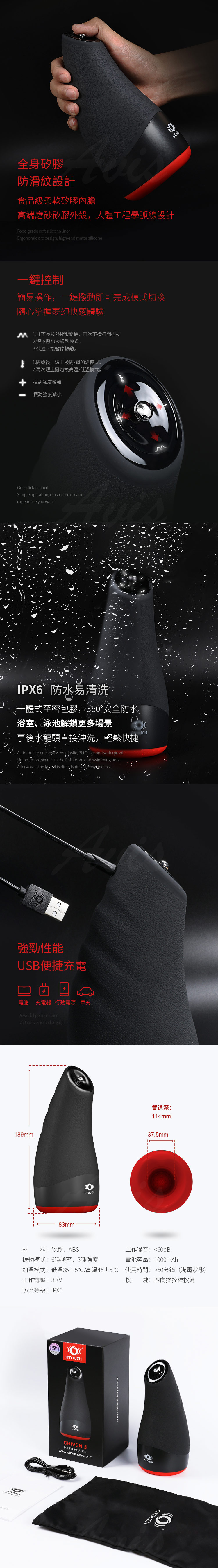 產品名稱:OTOUCH CHIVEN3 熾吻3 智慧控溫 6頻震動 3頻強度 飛機杯