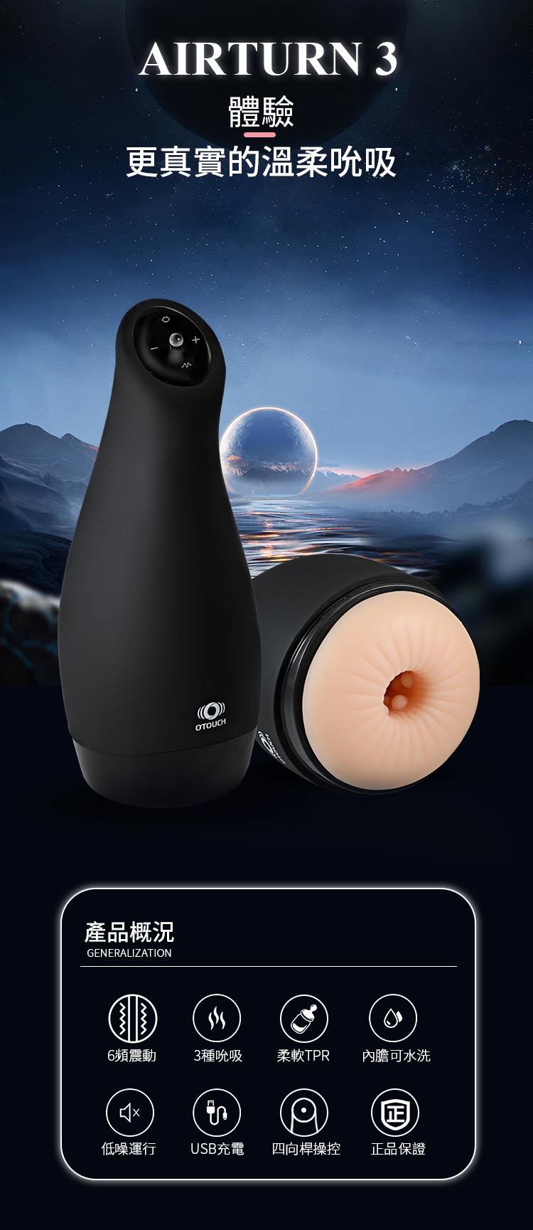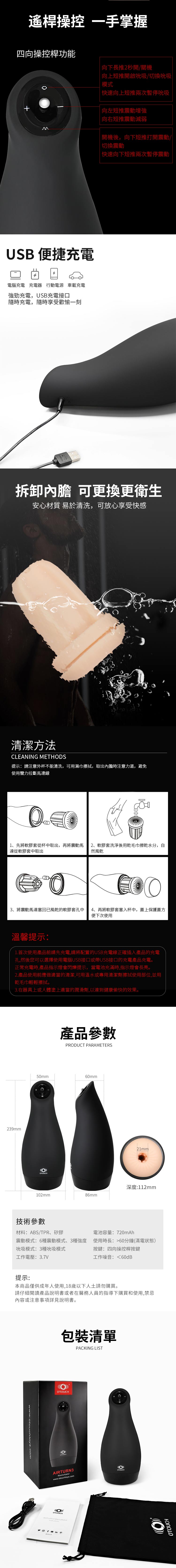 產品名稱:OTOUCH AIRTURN3 愛吞3 6X3頻 震動模式可拆式電動飛機杯 後庭款