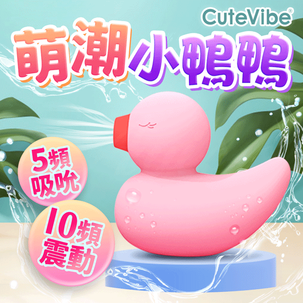 Cutevibe-小鴨鴨雙用吸吮震動按摩器-粉