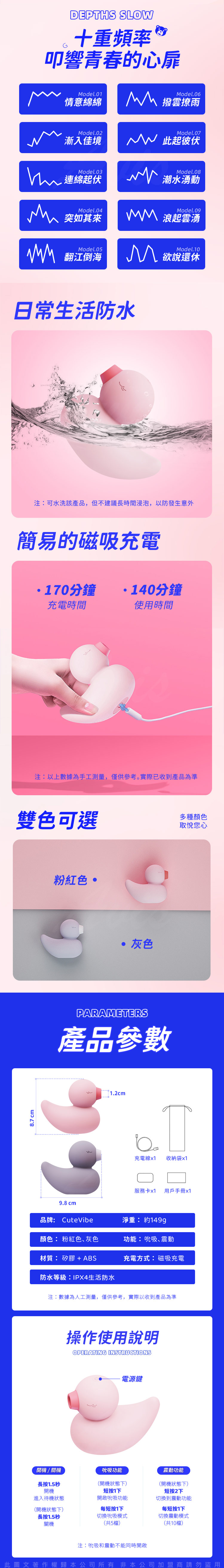 名稱:Cutevibe-小鴨鴨雙用吸吮震動按摩器-粉