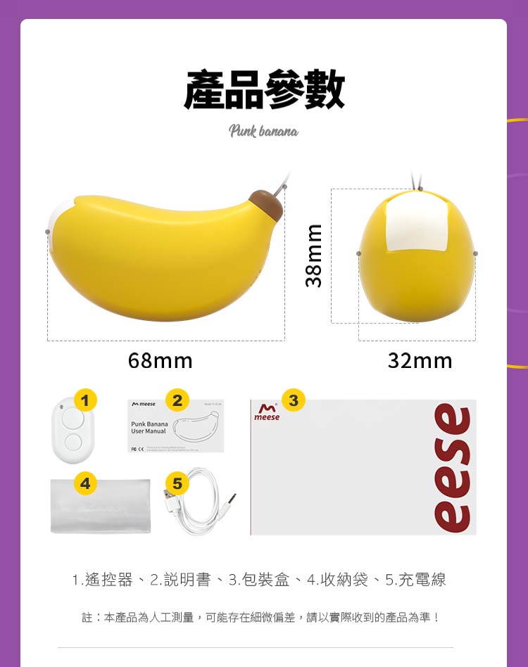 產品名稱:meese米斯 小香蕉 10頻 無線遙控跳蛋