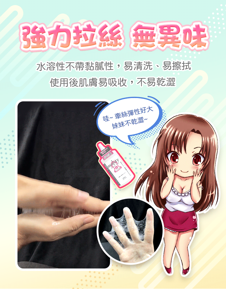 透明無異味強力拉絲,水溶性不帶黏膩性,易清洗可免洗