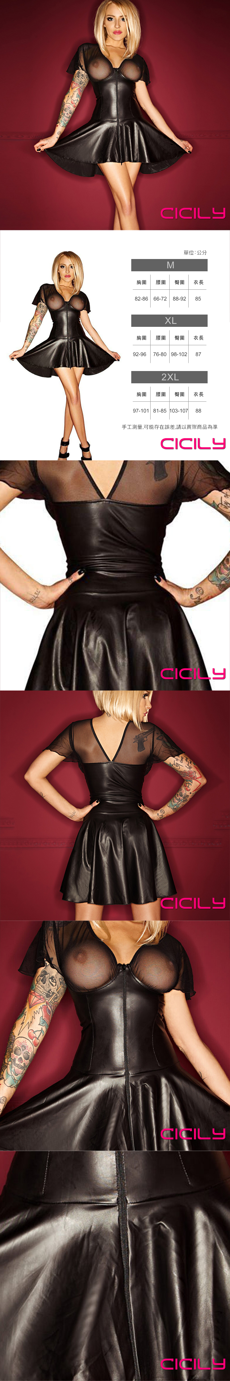.主商品:CICILY 性感V領透視網紗袖連衣裙 漆皮膠衣 M