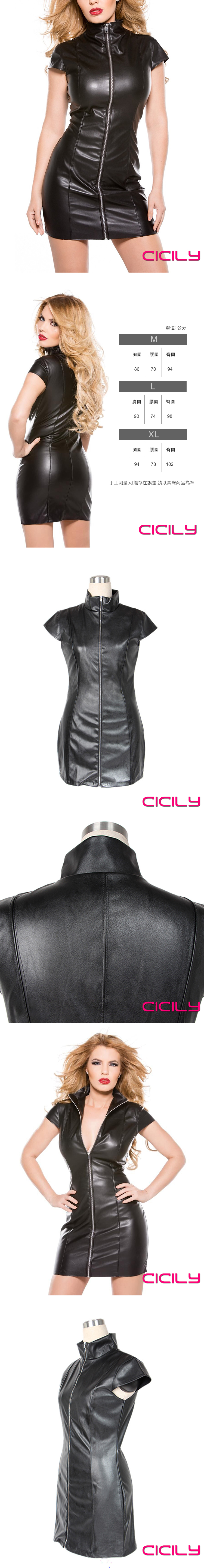 CICILY 慾火重生 漆皮拉鍊短裙 漆皮膠衣 黑 XL