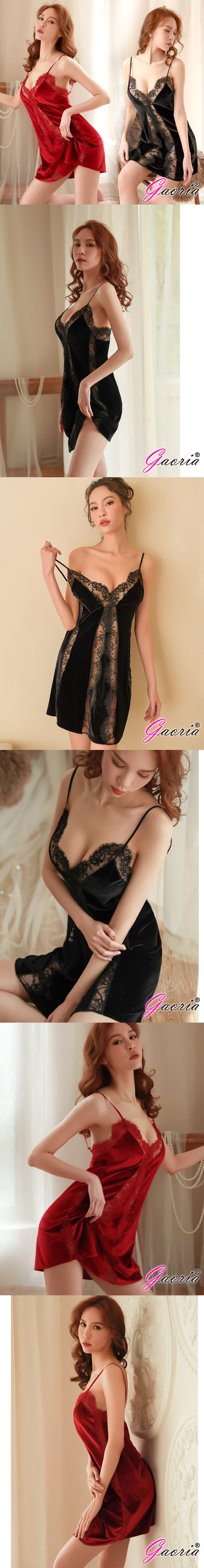 · 商品名稱:【Gaoria】擄獲美姬 絲絨性感蕾絲睡裙-黑