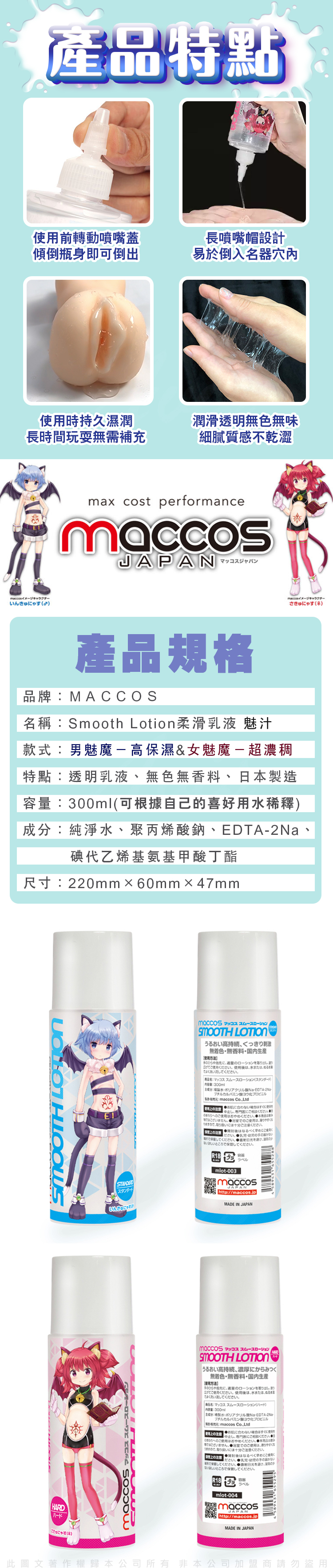 日本maccos 萌汁 飛機杯專用潤滑液 高保濕免洗藍瓶300ML