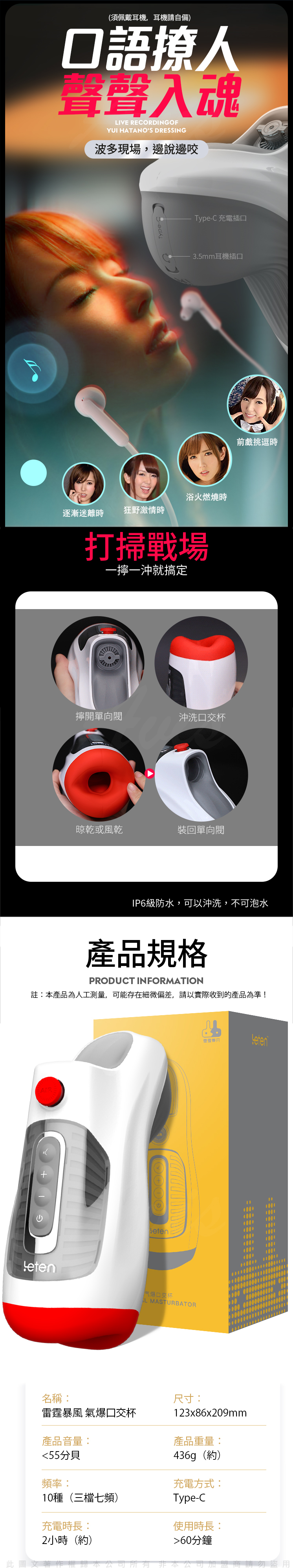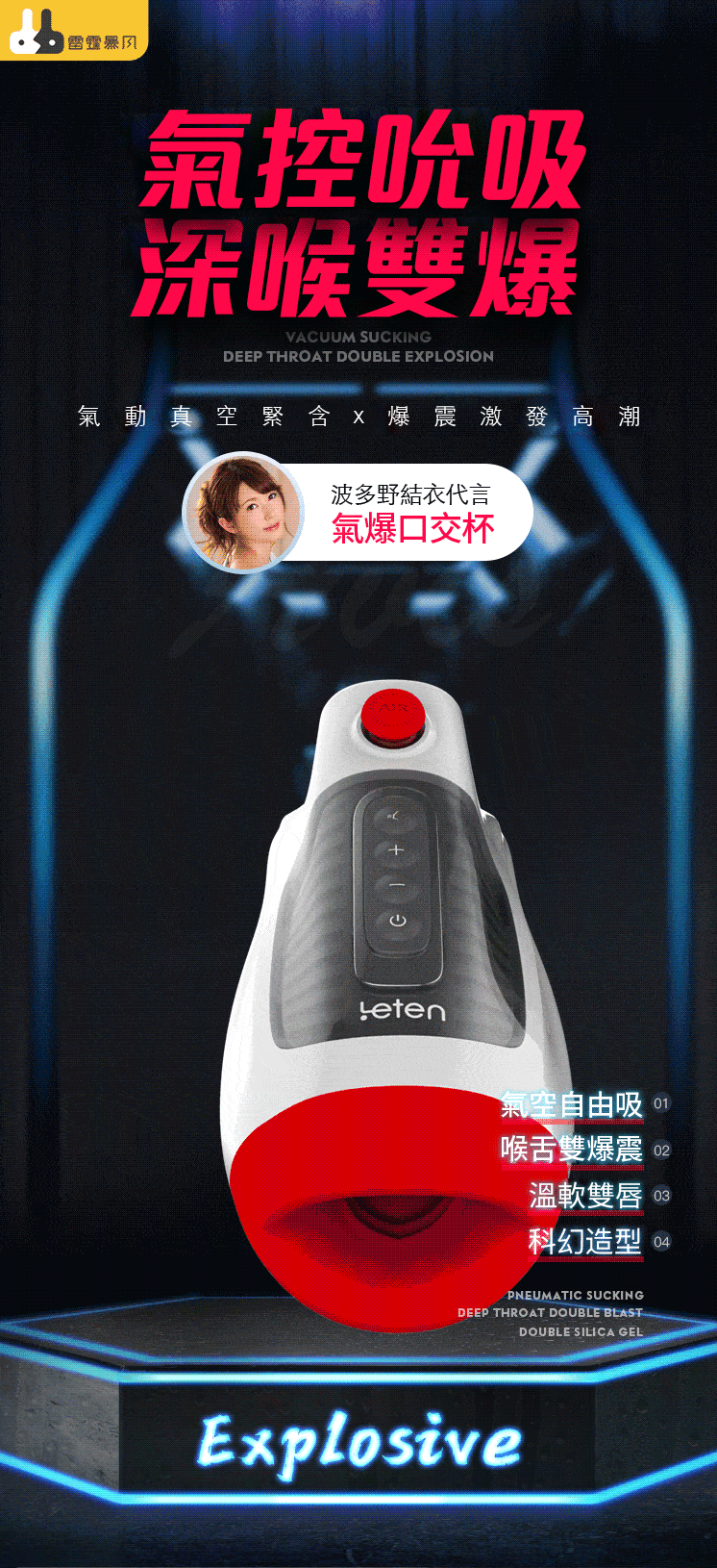 產品名稱:LETEN 雷霆暴風 波多野蜜唇 氣爆口愛發聲飛機杯