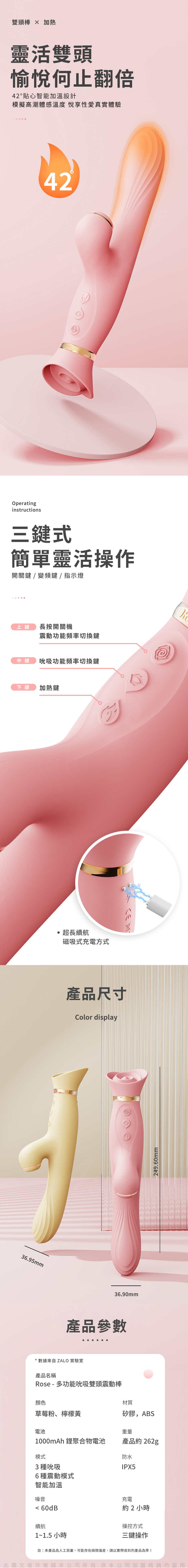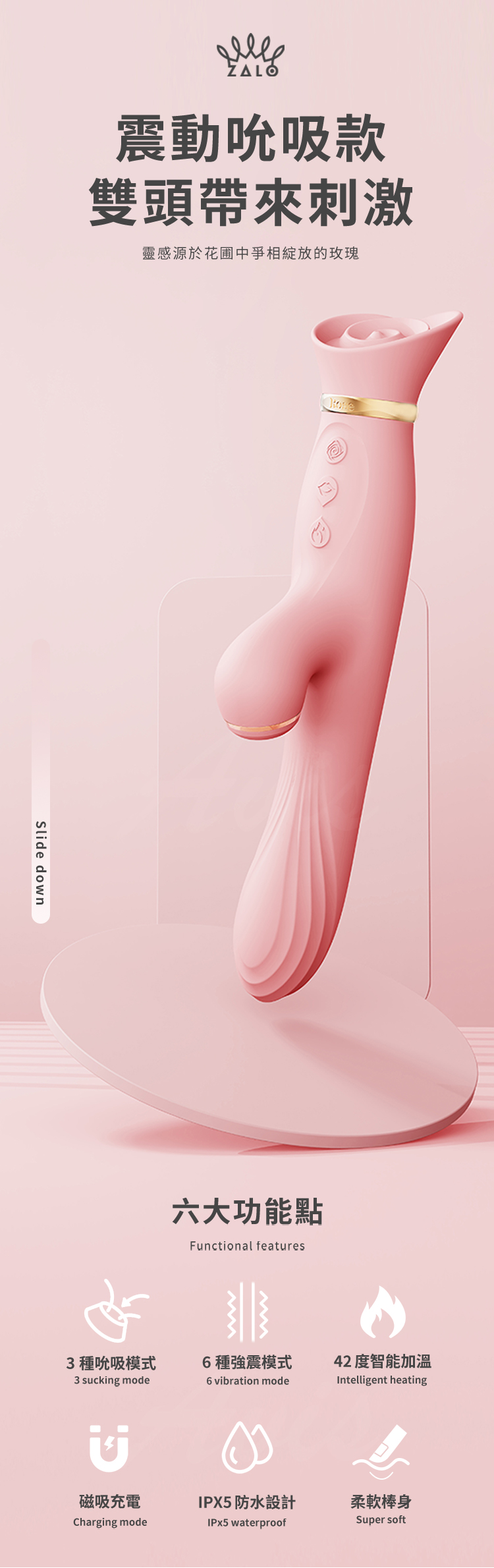產品名稱:Zalo Rose Vibrator 加溫吸吮按摩棒-草莓粉