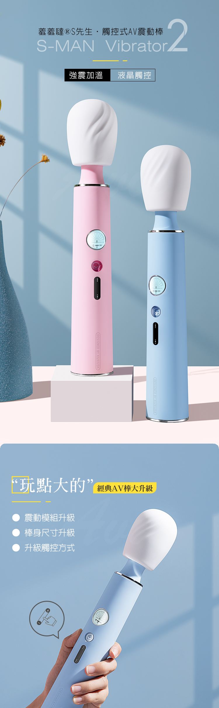 羞羞噠-S先生 智能恆溫 液晶觸控 AV震動棒-粉