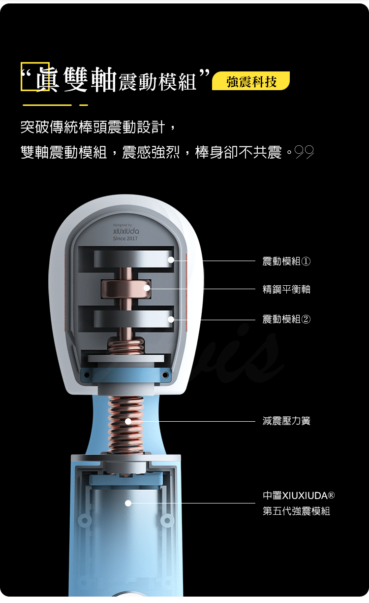 雙軸震動模組,震感強烈,棒身卻不共震。