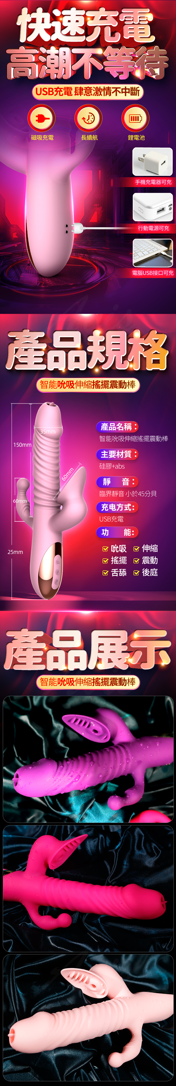 智能吮吸伸縮搖擺震動棒