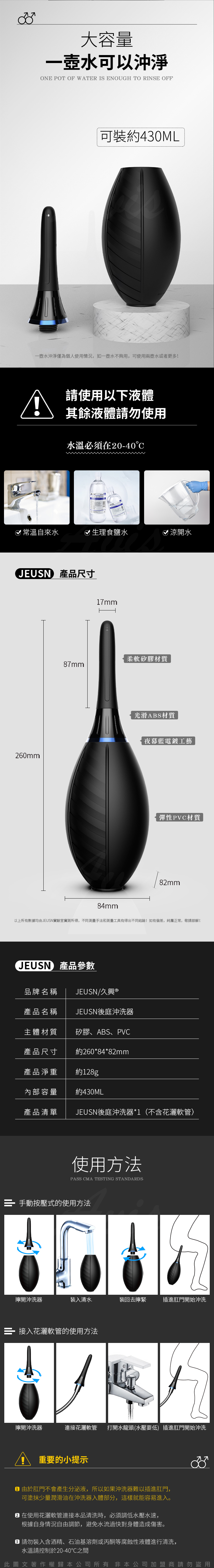 產品清單:JEUSN後庭沖洗器*1(不含軟管)