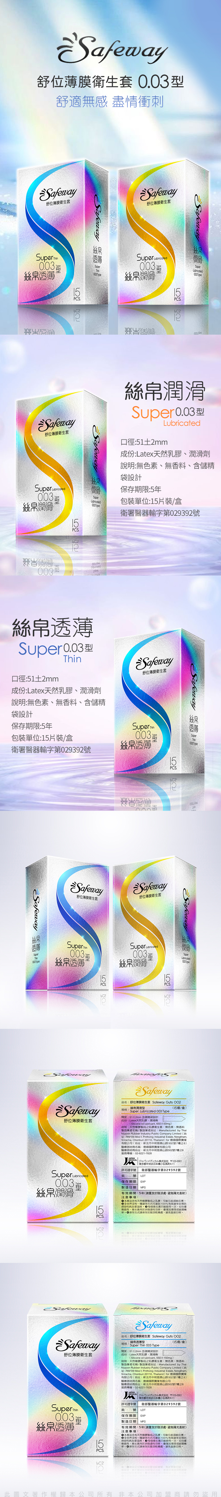 Safeway舒位|薄膜衛生套|絲帛透薄0.03 保險套 15入裝