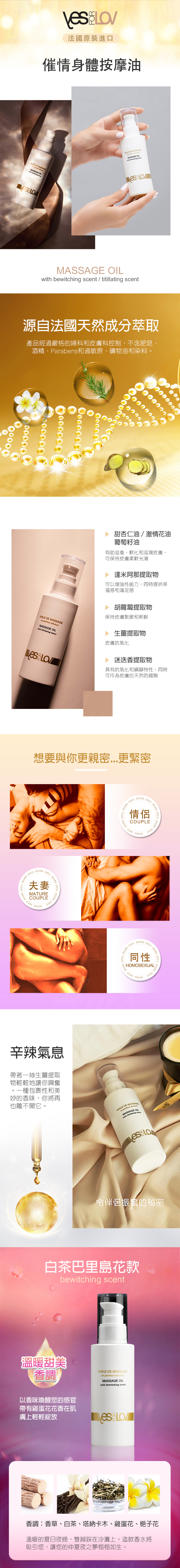 YESforLOV|催情按摩油|白茶巴里島花味 100ml